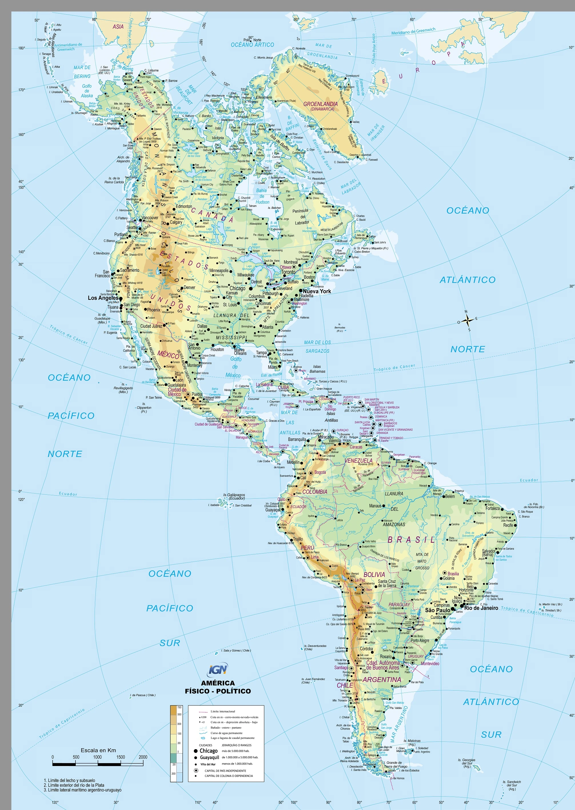 Ta conditions om relief ed climat arehgeihnt America dwo om tienxia longst boengis, id Mississippi-Missouri in Nord America (6275 km) ed id Amazonas (6700 km) in Sud America. Tibs addeihnt-se, eni id nordamerican continent, id hol iom Grand Lacs, product ios tahsa iom quarternar glehdjers, quod skeipt tienxia plautst preswedaykwos.